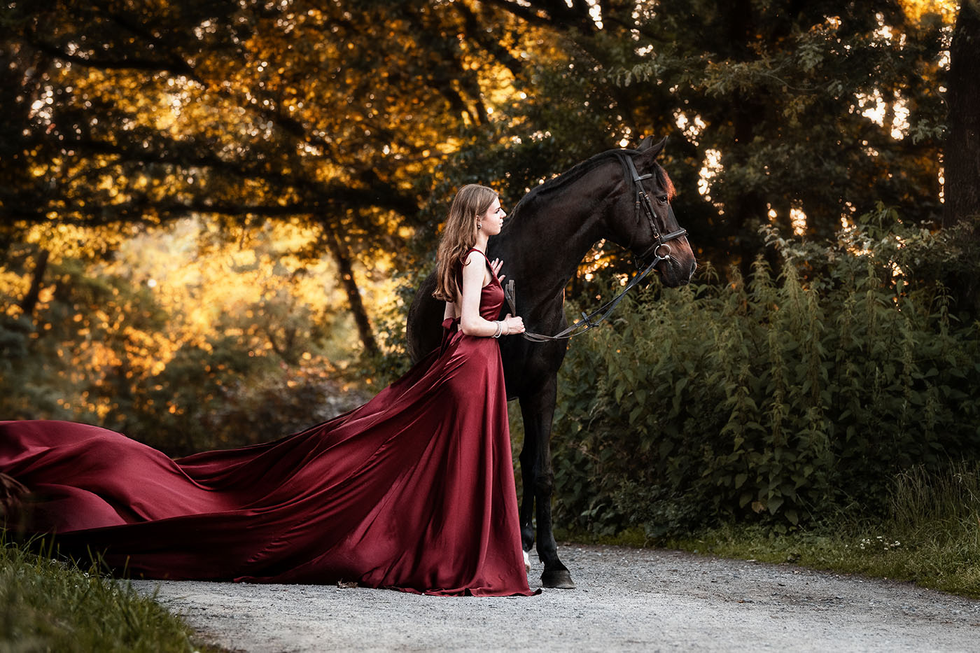 Bordeaux mit langer Schleppe